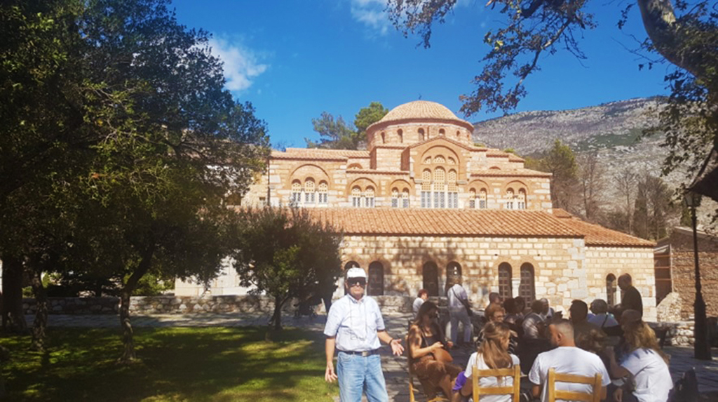 Στην συνέχεια, μεταβήκαμε στην αυτοκρατορική Ι. Μ. Οσίου Λουκά στο Στείρι, όπου ο Αρχιεπίσκοπος Ιερώνυμος διετέλεσε Ηγούμενος. Εντύπωση προεκάλεσε το γεγονός ότι οι αλλοδαποί προσκυνητές ήταν πολυπληθείς και διαφόρων εθνοτήτων, ακόμη και Προτεστάντες Γερμανοί. Το καθολικό έχει 150 περίπου ψηφιδωτά, κτίσθηκε το 1011μ. Χ, ενώ ο πρώτος ναός δημιουργήθηκε το 960 μ. Χ. Σημειώνεται ότι η μοναστική πολιτεία του ΑΘΩ ιδρύθηκε το 963 μ.Χ.